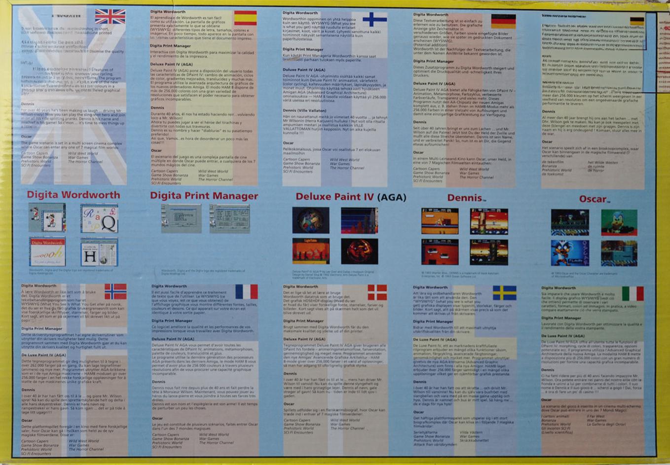 | Description: | The Desktop Dynamite pack was developed by Commodore UK, but was one the few packs that was sold throughout Europe. It had a standard A1200, or HD version.The backside shows information about the included software. Apart from Workbench whis also came with WordWorth, Print Manager, Deluxe Paint IV, Dennis and Oscar. |